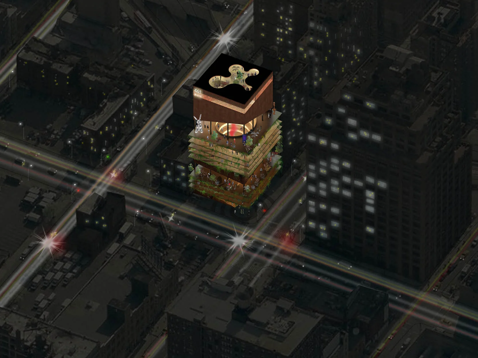 Located at the juncture of Chelsea, Hell’s Kitchen, and Hudson Yards, a Performance Arts Center is chosen as the additional program for the site. A brick volume hosts a theater, gallery, and a training school evocative of the reused warehouse spaces unique to the history of this area.